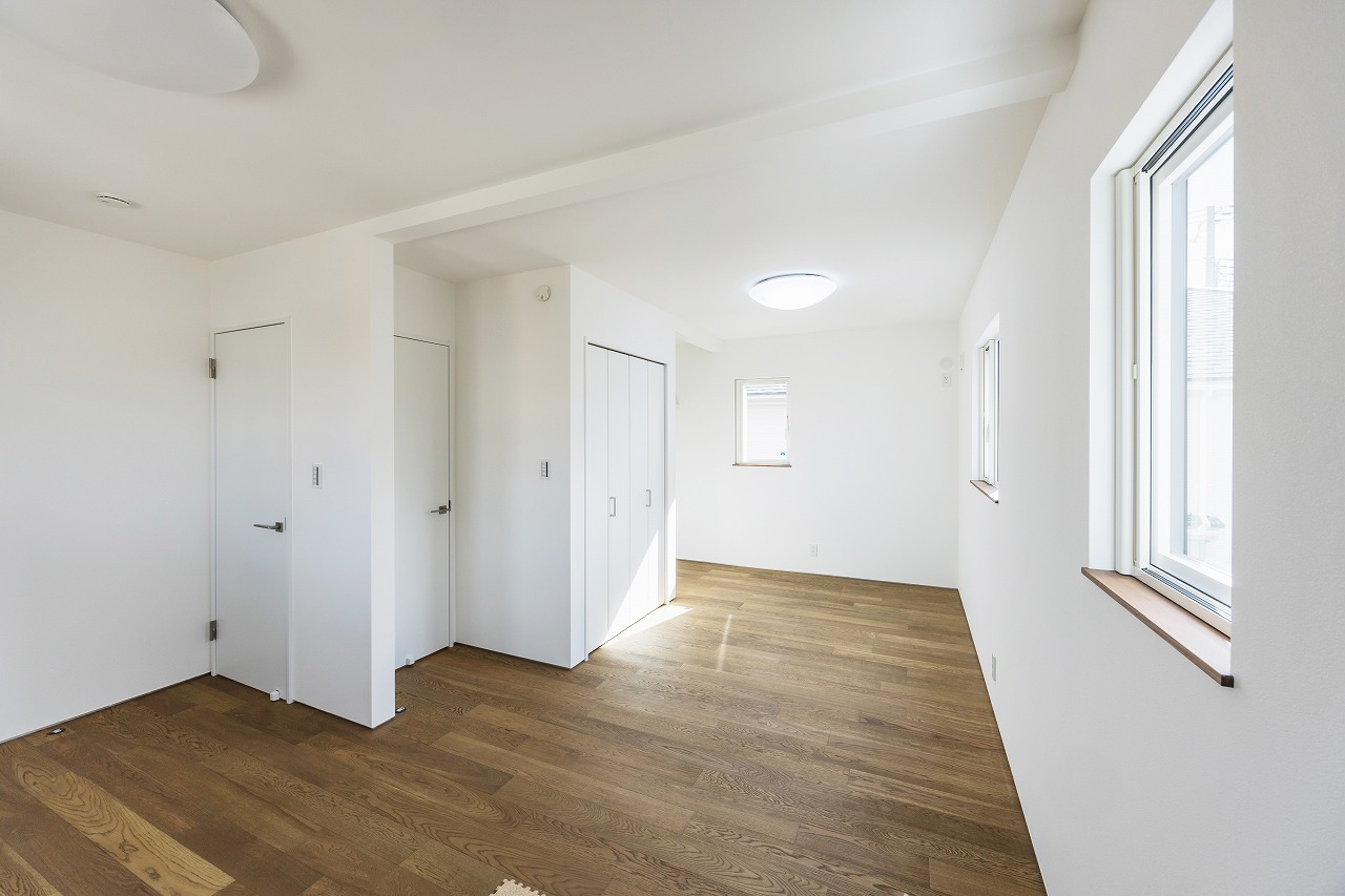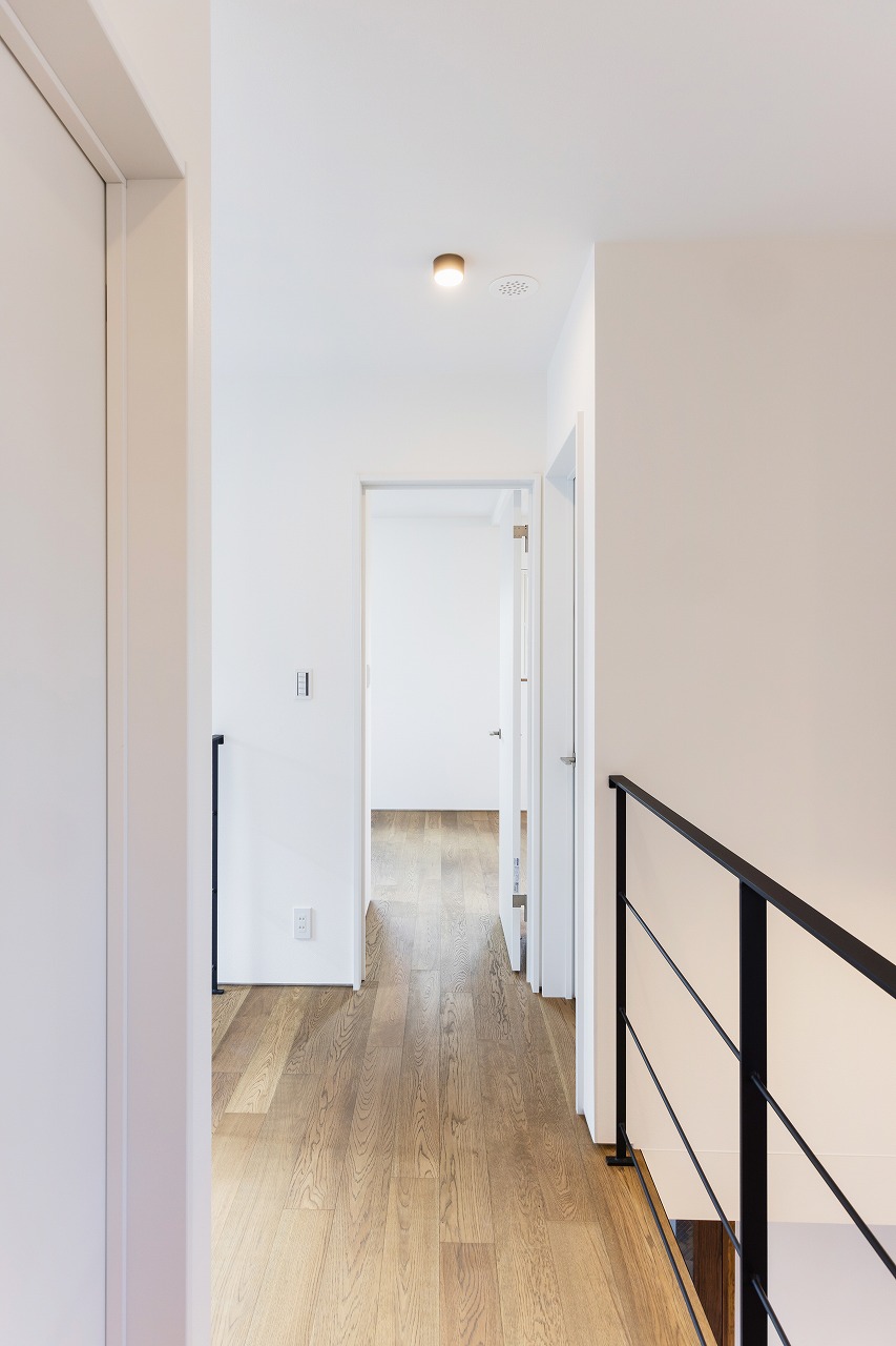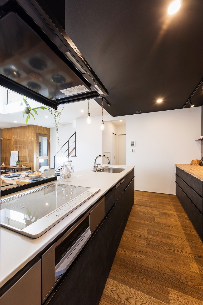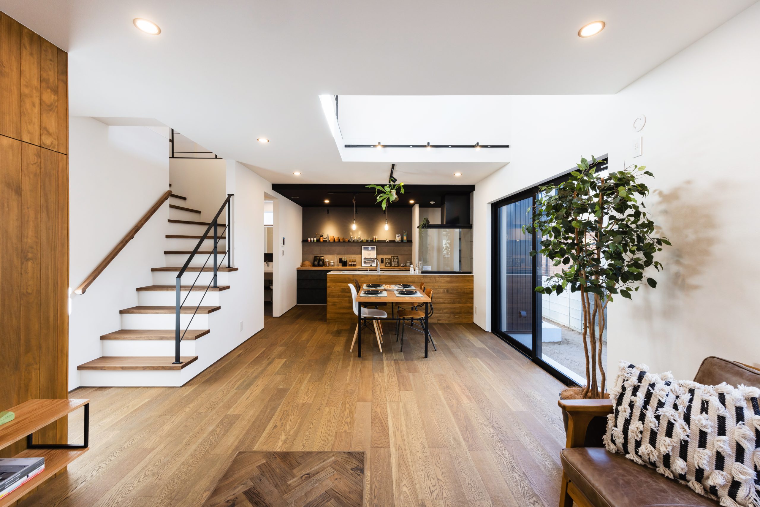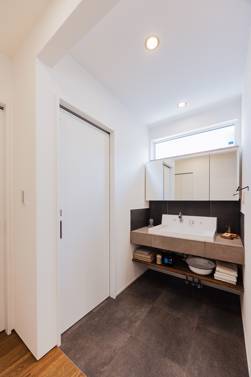家に帰った瞬間、つい足を止めて見惚れてしまう––そんな空間がある心地よさを、しみじみ感じる住まい。 グレーの濃淡が生む奥行きとさりげない表情が、暮らしに落ち着きを添えるキッチン。主張しすぎない“大人の余裕”が漂い、照明が灯る夜には、昼とはまた違う特別な雰囲気が広がります。 そして、気づけば家族が自然と集まっているのは畳の上。ごろりと横になったり、お昼寝したり、子どもの遊び場になったり––ソファも良いけれど、畳がくれる“くつろぎの特等席”はやっぱり別格。和室の良さを、令和の今こそ改めて感じられる空間です。 さらに、この住まいの1階は廊下をなくした設計に。洗面も生活動線上に配置し、家の中をスムーズに移動できるので、毎日がストレスフリー。最短距離で動けるため、自然と時短にもつながります。 心地よさと機能性を両立した、のびやかに暮らせる住まいです。